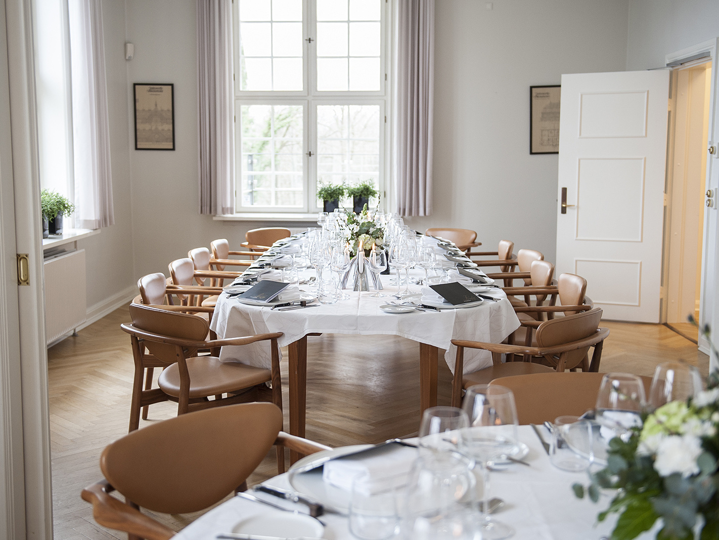 Det betyder for dig som gæst, at du kan afholde møder i private omgivelser med moderne AV-udstyr i den ene stue og nyde den eksklusive forplejning i den anden.