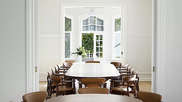 Louisehøj can accommodate meetings for between 6-12 persons at an assembled oval table.